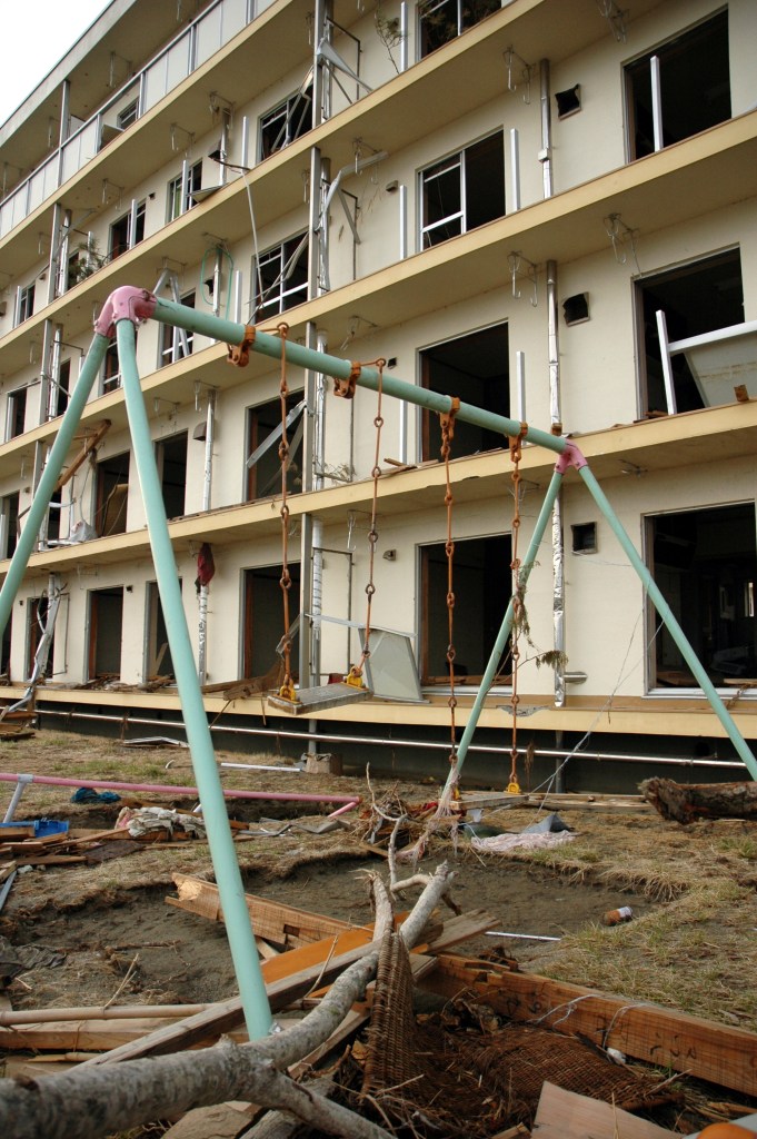 Não trocamos nenhuma palavra. Não me lembro também de ter olhado para o rosto dos meus colegas. O silêncio era rompido apenas por carros que passavam pela estrada. Ao longe, o segundo piso de um sobrado parecia intacto em meio a tanta destruição. Um casal de japoneses caminhava com dificuldade em meio aos destroços. Procuravam por algo. Talvez uma foto ou qualquer objeto pessoal – tarefa quase impossível. Um pouco mais distante, uma senhora lavava objetos num rio sujo. Ver fotos e brinquedos de criança em meio à lama me partiu o coração.
